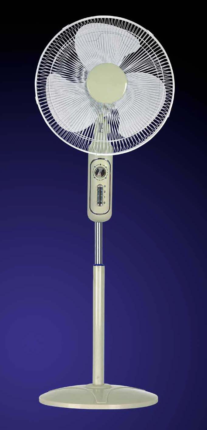 16"standing fan (with 2 hours timer) 110~120V,60Hz 220V~240V, 50Hz, 85degrees Oscillation , three speed choice; 430x120x1.3mm mesh, 480mm round base, Standard of Motor: 66*16mm.