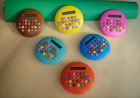 - calculator with 8 digits display, circular shape, keystrokes can be differenct colour.