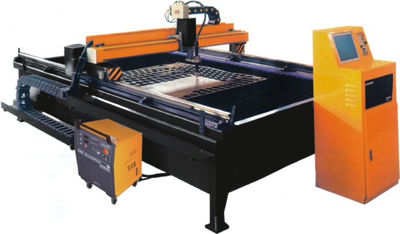 The machine body and the material support are integrated as a whole. They may be moved integrally. It is an economic, applicable, high efficient, high precision, high speed plasma cutting type.