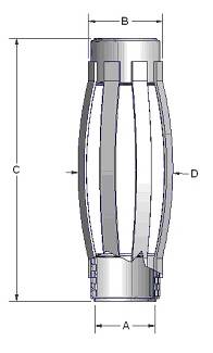 Hinge-Type Centralizers feature channel-formed collar rings with hinges placed within the channel to eliminate hinge damage. This Construction assures that hinges will not rupture while the casing is being run regardless of hole directionor irregularities in formations.