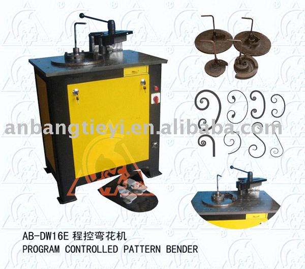 AB-DW16E Touch Screen Program Controlled Pattern Bender it is based on the specific needs of the iron art produce,it is improved form the older program controlled pattern bender. The newest design, used new type of folding stop arm in the top of the machine, greatly increase the bend in the course of processing raw materials to spend the scope of activities available. Can make diameter of the “C”, “S”, “P” patterns in to 350mm. Others , make the new LCD touch screen program controlled parts, in bilingual show, the users can see the operation description so easy.