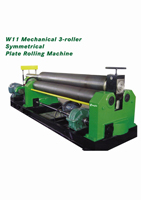 ● The machine adopts 3-roller symmetrical structure with the upper roller as the main drive and the lower roller makes vertical movement so as to clamp the plate materials tight. The main drive comes from the engagement between the gear of the lower roller and the gear of the upper roller. The side roller makes elevating movements and has the function of preliminary bending and rolling. The disadvantage of the machine is that the ends of the plate materials need other equipment for pre-bending.