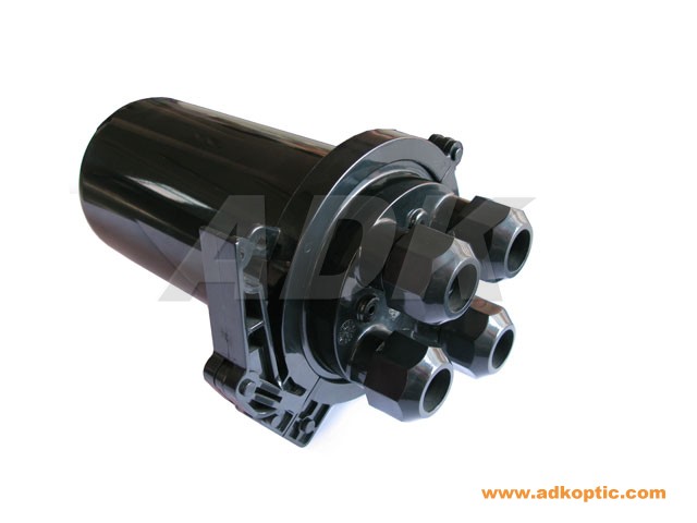 Optical fiber splice closure, with metal hoop, dome, vertical type, 4 (4x16mm) inlet or outlet ports, 1~4 trays for bunch fiber. For bunch fiber - 037 tray (110*93mm) with 12 cores and heat shrinkable protective sleeves, accessories, 288x178mm. (price for bunch fiber, with 2 trays, total 24 cores).
