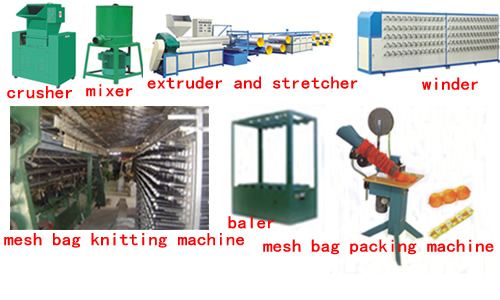This production line is suitable for producing packing bag for various kinds of vegetables and fruits such as potato, onion, garlic head, orange and apple etc.