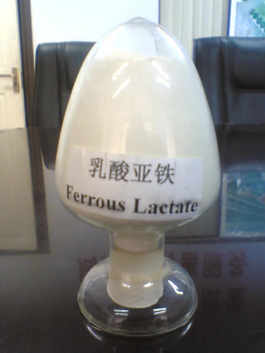 - It is light yellow green crystal or powder, smell-less or with a slight touch of rust smell. Formular is C6H10FeO6.3H2O and the molecular weights is 288.04. It can be easily dissolved in hot water. It is widely used in food, beverage, dairy product, table salt, nutritive liquid medicine, etc. It has hotable results in the prevention and cure of iron-deficiency anemia. As food additive, the adding amount of Ferrous Lactate should be: 120-240mg in cereal and cereal product, 50-100mg in beverage, 300-500mg in dairy product and nurseling food, 4800-6000mg in table salt and bonbon.