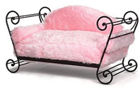 Iron Sleigh Bed,A luxurious, custom-designed iron sleigh bed, covered in a plush, pink faux fur fabric, for your little princess!Beautifully crafted with a sturdy, scrolled frame and powder coat painted (a baked in process to minimize chipping & peeling). Each pillow is hand-sewn, with a hidden zipper, the covers are removable and machine washable.The featured black frame is lead free.The frame is available in black, brown or vanilla