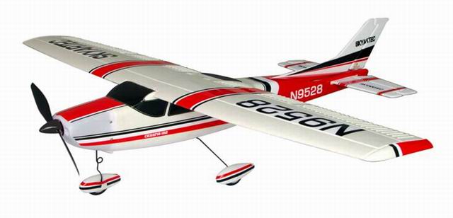 This 4CH SKYARTEC CESSNA 182 is different from others. This Cessna is equipped with 4 servos not 3 servos as common. It includes everything the beginner needs. Servos and steering levers are mounted and the airplane could be ready for flight within 20 minutes. Furthermore, the plane uses EPS technique for the airframe in order to achieve both smooth surface and best dynamic material properties. The model has a steerable front wheel and uses two servos mounted directly to the main wing roll rudders and the tail wing.