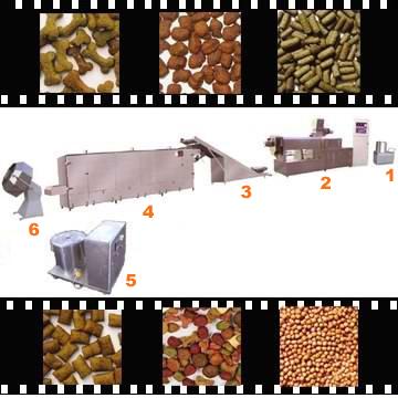 Pet food processing line mainly uses corn powder, soy powder, fish powder to produce pet food for dog and cat and also feed for view fish and feeding fish, there are two types:floating and inside water fieed.