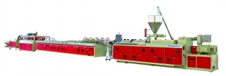 This production line is designed according to international latest technology, mixed PVC, PP, PE with plant fibre symmetrically. It adopts high-efficiency conical double-screw extruder with forcible cooling system to extrude and form