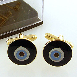 A new addition to our website these Gold tone evil eye cuff links measure approx. 3/4 of an inch across.