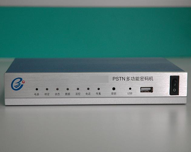 PSTN multi-function cipher machine enable the encryption and protection service of important call, fax and point-to-point data communication via public and private telephone network, to ensure the safety of transmission over lines, thereby effectively preventing leak loss from the transmission lines of sensitive information. PSTN multi-function cipher machine consists of general purpose key management device, Key Distribution Center and cipher machine. Two ways (online and offline) of key management are supported, general purpose key management device creates key, and distributes cipher algorithm and key offline; the key distribution center is able to distribute key online.