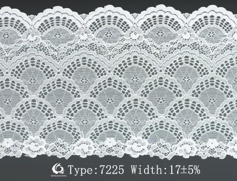 17cm wide with scalloped edge and unique pattern ,made of 91%nylon and 9% spandex