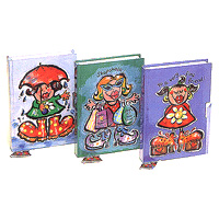 Boot Leggers Series, 3 assorted designs, Girl under umbrella, Shopping girl, Thinking girl.
