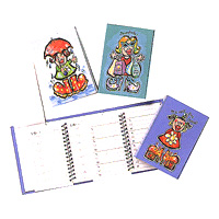 Boot Leggers Series, 3 assorted designs, Girl under umbrella, Shopping girl, Thinking girl.