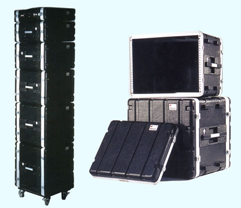 The 19" stackable racks has received worldwide acclaim for durability, convenience and easy handling. Molded of Ultra high molecular weight polyethylene, They are less than half the weight of old fashioned wood racks and provide maximum protection. Front and rear covers are gasket sealed to protect equipment from moisture and dirt. Mounting equipment is a snap with provided hardware.