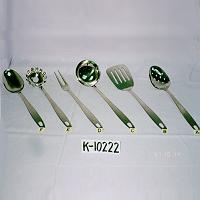 18/10 13" kitchen utensils include: spoon, fork, spatula perforated, ladle, pasta server.
