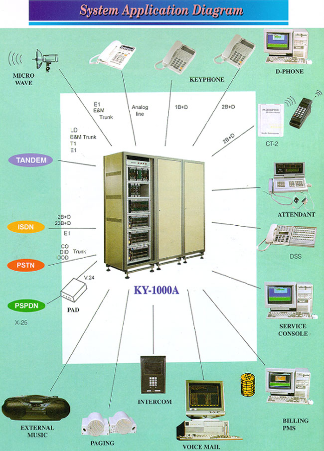 Digital hybrid epabx products and wireless pabx, digital pstn exchange system, Radio digital line concentrator, ISDN video conferfncing system, Multi-channel recording system, Key-telephone system, VideoPhone system, Wireless dect system, Alphanumeric & numeric pagers