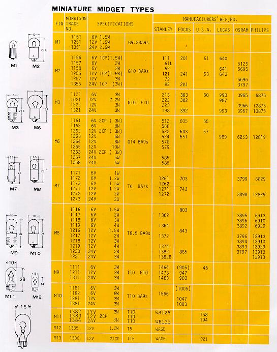 Miniature Midget Types Automobile Lamp Bulbs