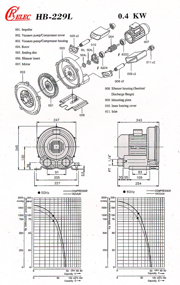 INSTRUCTION FOR OPERATION: Ruey Chaang blowers are designed for handling air, other non-explosive gases and gasair mixtures completely oil-free at medium temperatures up to 40 c. The same blower can be used either as a vacuum pump or as a compressors. In order to avoid an overload of the motor, blowers with limited performance curves in the high-pressure range should be fitted-depending on the application-with the relative pressure relief values. Pressure relief valves can be mounted directly on the outlet, vacuum relief valves directly on the inlet of the blower.