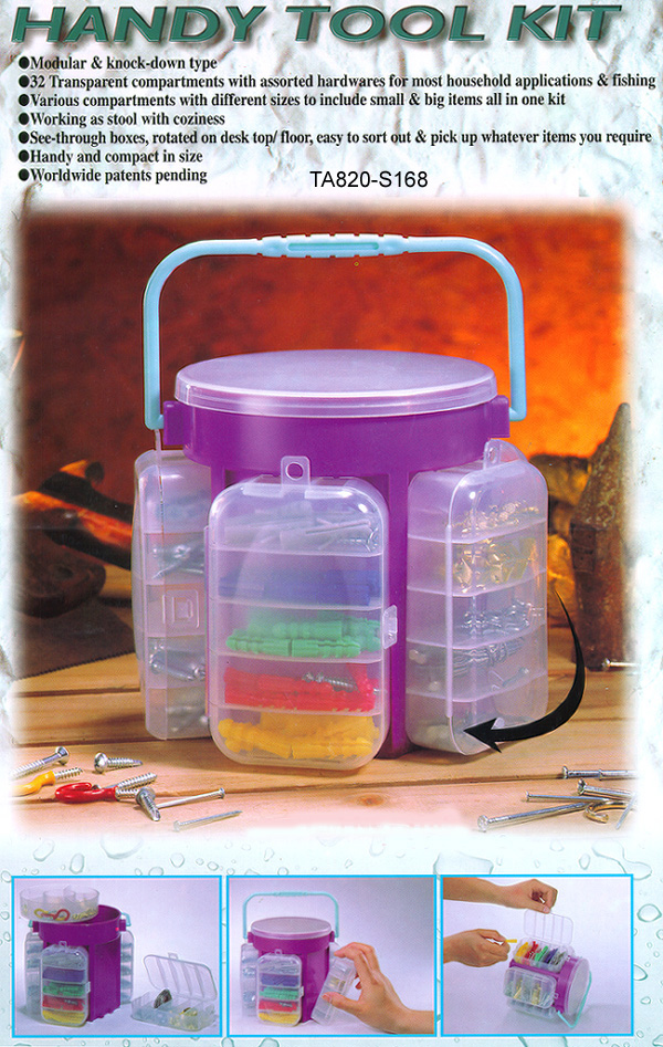 - 32 Transparent compartments with assorted hardwares for most household applications & fishing