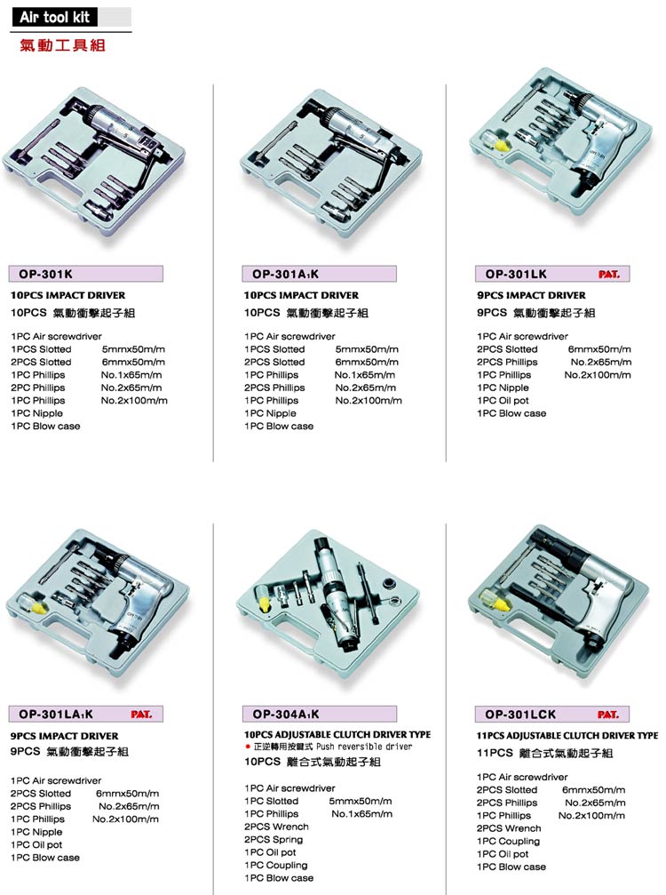- OP-304A1K: 10PCS Adjustable Clutch Driver Type (Push reversible driver)