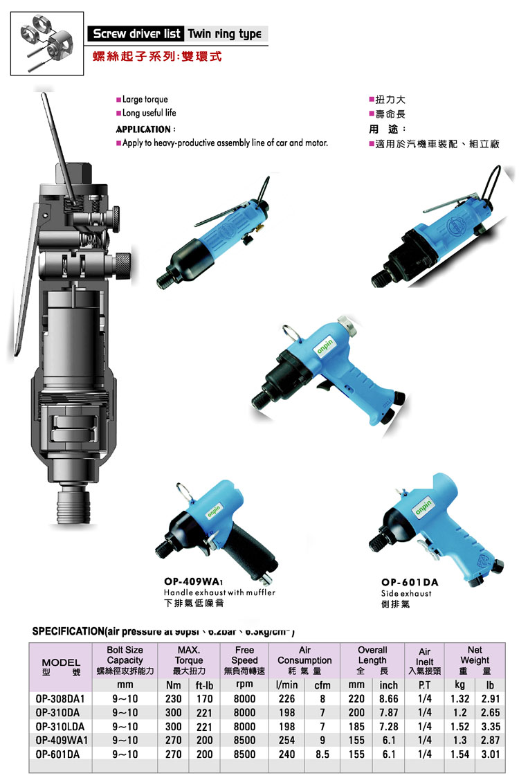 | OP-601DA | 9~10 | 270 | 200 | 8500 | 240 | 8.5 | 155 | 6.1 | 1/4 | 1.54 | 3.01 |