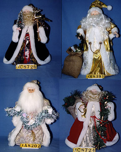 Fabric santas, porcelain face & hands.