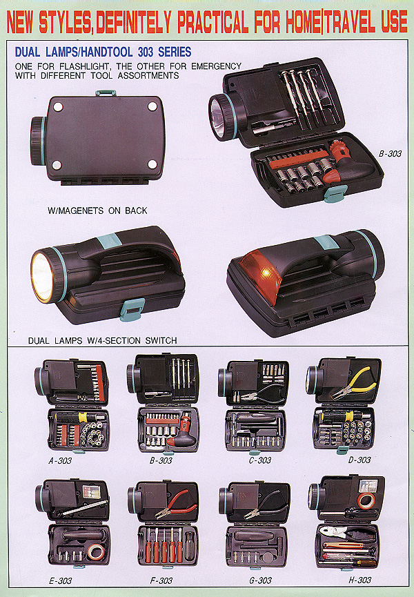There are 2 lamps, one for flashlight, the other for emergency, with tool box has many different tool assortments for different use-for home, car, computer, bite, workplace etc.