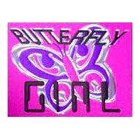 Embossed and printed label with girl and butterfly design.