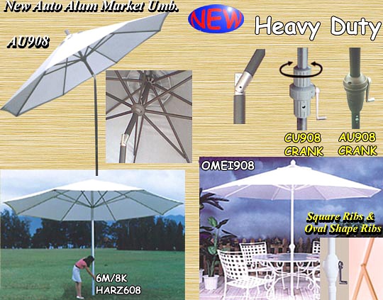 | AU908 | 270cm/9ft | 135cm x 8 ribs | 35/38mm (auto tilt) | 1pc/1.76/1,100pcs |