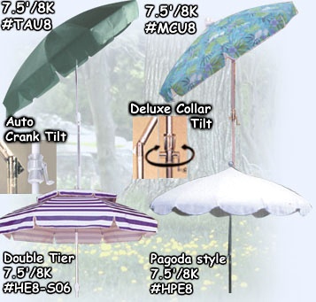 .Item No.: MCU8, TAU8, HE8-S06, HPE8| Item No. | Size | Steel Rib Size | Alu. Pole | Tilt | Pack/Cuft/40ft |