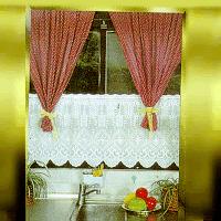 The white lace curtain use in the kitchen and bathroom. Its PVC material is waterproof and keep long time. We have different design and size for your selection.