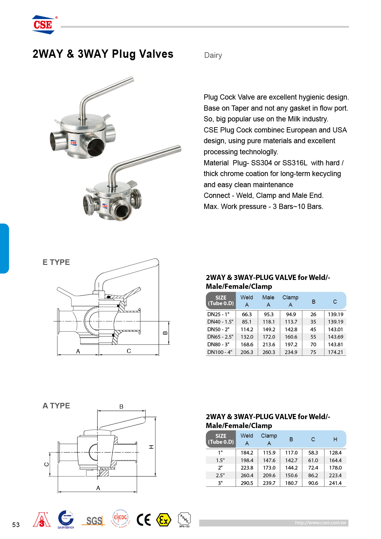 The plug cock valve is an excellent hygienic design. Appliaction in the milk, beverage, wine industries, special dairy industry. The metal taper stops leakage design instead of rubber gaskets. It is pollution-free and requires no maintenance. CSE Plug Cock combines European and American Cock designs. Advantages, the surface is treated with special hard chrome coating technology, which can be d for a long time operation and is easy to clean and maintain.