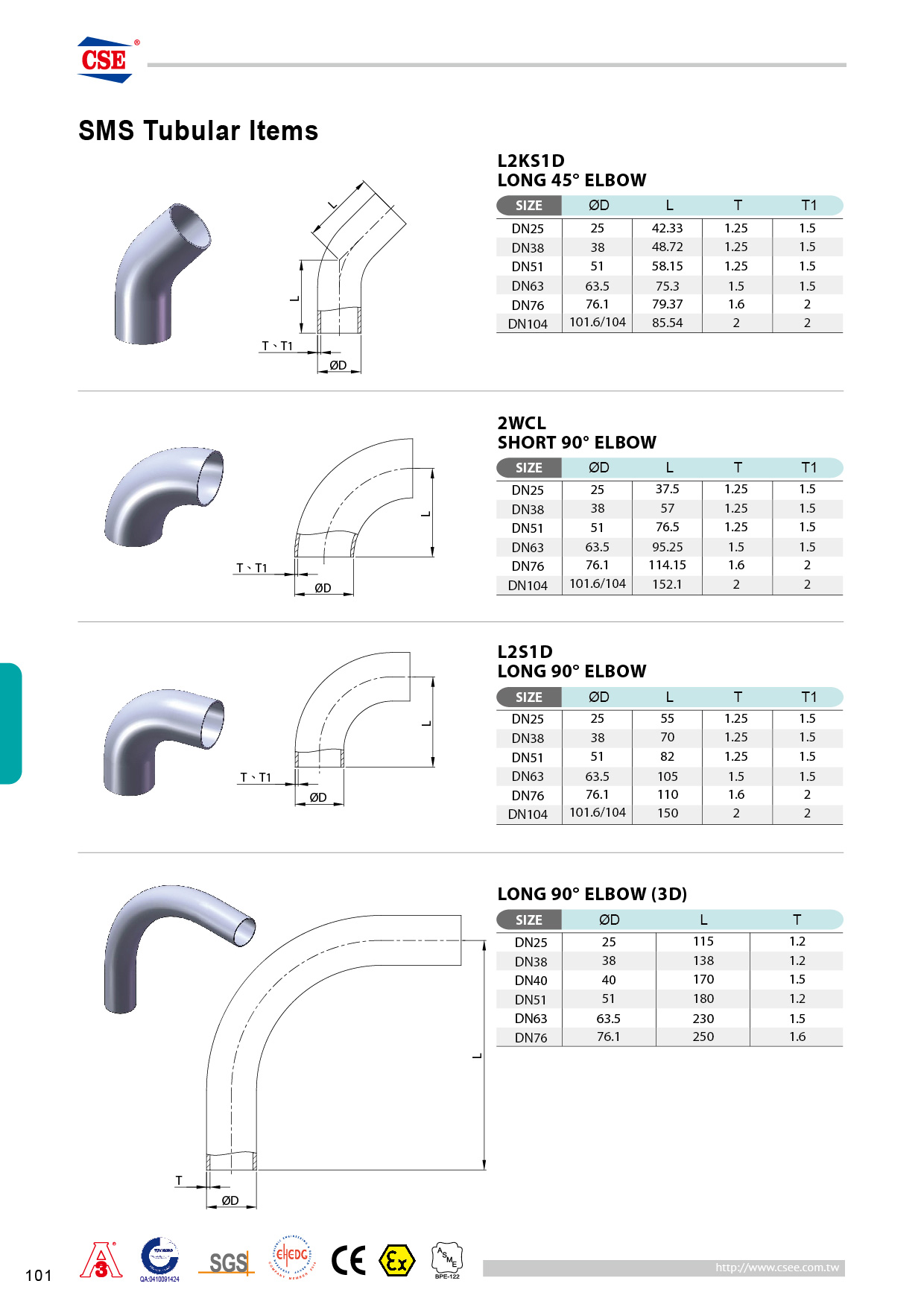 - Elbow:Long /Short 90 °/45 °Elbow. R=1D. Short R=1.5D