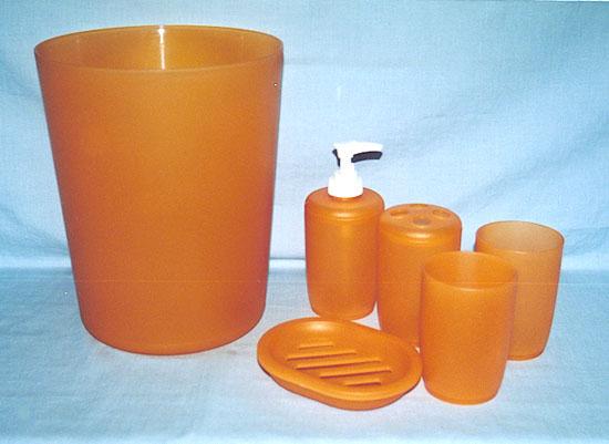 This bathroom accessories made by PP plastic material. Consist of garbage can, soap dispenser, toothbrush holder, tumbler, soap dish.