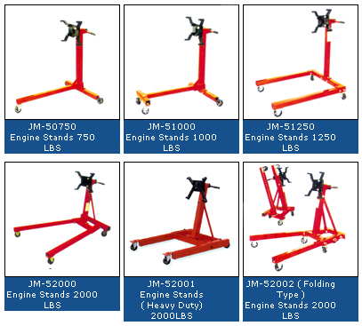 Bottle Jack, Floor Jack / Trolley Jack, Garage Jack, Jack Stand, Scissor Jack, Power Jack, Engine Stand, Engine Hoist, Work Shop Press, Motorcycle Lift, Farm Jack, Pipe Bender, Creeper, Hose Reel, Pallet Truck, Transmission Jack, Wheel Dolly, Car Ramp, Wheel Stand, Car Hoist