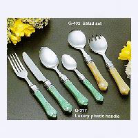 Stainless steel flatware with luxury plastic handle, mirror finish.