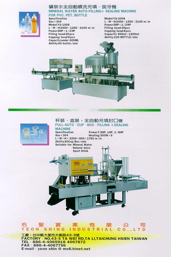 bong bong ice auto - filling & sealing machine, jelly full - auto filling & sealing machine, full - auto cup / box filling & sealing machine, full - auto unscramble machine, sofe drink filling & sealing machine ( filling, & aluminum foil capping & sealing ), full - auto cap pressing machine ( drink