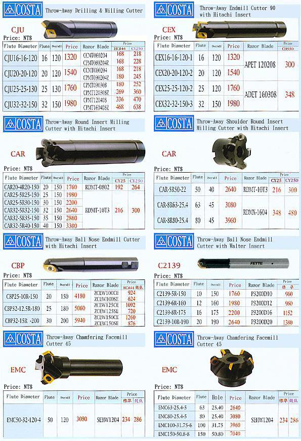 - Coarse tooth cutter: CTU, CAR, CBP, etc.