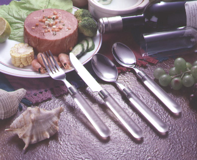 | 4" Dinner Spoon | 3 1/2" Dinner Spoon | 4" Dinner Knife | 3 1/2" Dinner Fork | 2 1/2" Tea Spoon |