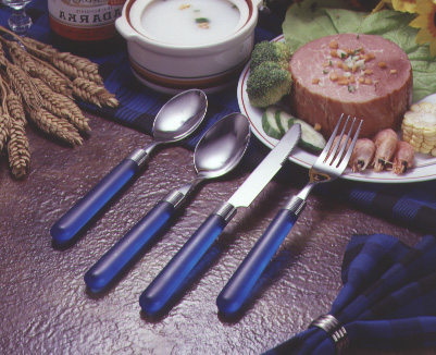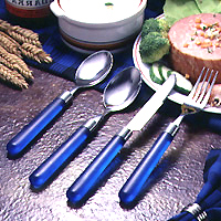 | 4" Dinner Spoon | 3 1/2" Dinner Spoon | 4" Dinner Knife | 3 1/2" Dinner Fork | 2 1/2" Tea Spoon |