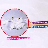 Made of well-ventilated mesh and elastic band. Four back meshes support the waist effectively. Isotropic magnet's forces improve blood circulation and lessen pain caused by stiff muscle. Suitable for anyone suffering from backache, waist pain and gastroptosis.