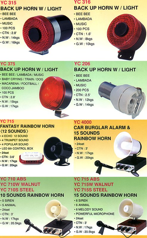Strobe Light, Back Up Horn, Car Interior Light, Siren, 3rd Brake Light, Car Burglar Alarm