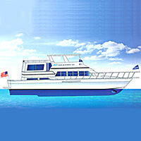 The amenities and standard equipment list are superior to any vessel that we are aware of at this time. The hand crafted fit and finish of the cherry wood interior will be appreciated by the most discriminating buyer. The hull bottom is solid fiberglass. Coring is used above the water lines to lower the weight but have superior strength. The double hard top and wing doors are standard.