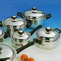18/10 stainless steel fine cookware -12 pieces W/24k gold-plated & backbite handles & knobs. W/5mm thickness aluminum base, W/super Sandwich bottom