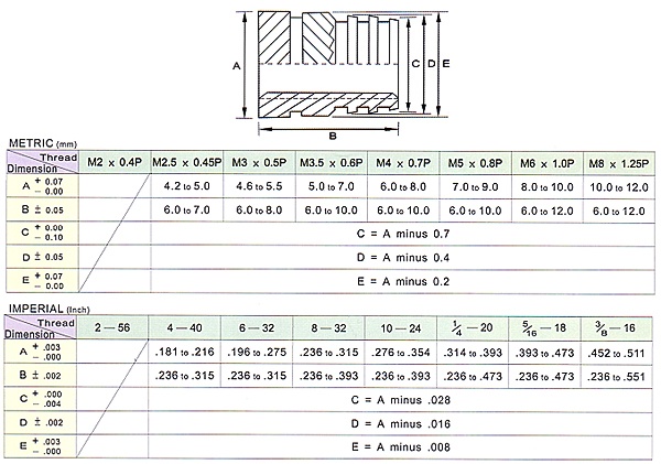 Method of installation: Ultra-sonic, thermal & moulded-in.