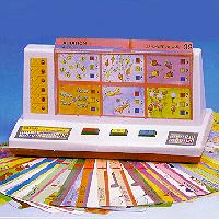 A convenient, self-learning talking computer for children age 4 and up. Fun and easy to use, the Talking Learning Square improve skills in math, counting, addition, subtraction and number patterns. It includes skills in word recognition of colors, shapes, body parts, etc. Children can learn about general professions, clocks, and everyday objects. This unique educational toy consists of 18 double sided cards, 6 questions per side, 216 questions in all. Simply insert the card into the computer and answer the questions in order. When the child presses the right colored key [A, B, C], the computer sounds a response and shifts automatically to the next question. Each answer, whether correct or incorrect, will receive a verbal response from the computer toy. As the computer shifts from question to question, a light turns on indicating the question at hand. At the completion of all six questions on the card, the Talking Learning Square give a verbal response indicating the numbers correct, and stating "very good", "excellent", "try again" etc. depending on the child's scores. During playing time, should three minutes elapse without keying in, the computer toy will automatically shut off, thus saving batteries. Cards can be neatly stored at the rear of the computer.