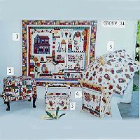 Number 1 is a wall decoration; Number 2 can be used as a sewing notion keeper and chair as well; Number 3 is a sewing and accessory basket, and number 4 a magazine stand; number 5 is a lampshade.