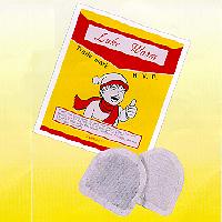 "Luke Warm" Disposable Heat Packs are produced with our special technology and marketed with our trademark registered in Taiwan. Contents: charcoal, water, ferric chloride, vermiculite, salt, non-toxic, non-flammable. They are available in three different packages: single large, twin small, and twin small in horseshoe package. Twin small in horseshoe pack is only for use with ski glove, mittens, parkas, jackets, ski hats, ordinary gloves, shoes, and the like to help keeping warm, for compress on joints, muscles and tendons, and for rehabilitation in medical treatment.