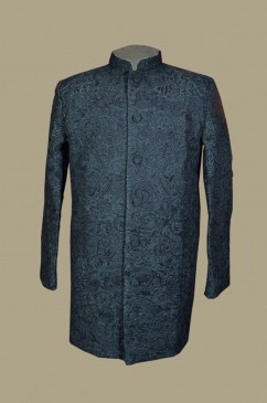 Certified Organic Natural dyed darbari jacket in self threadwork embroidery in a baroque floral motif all over the front bodice.